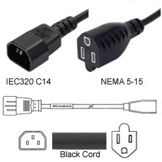 ![]() IEC320 C14 to NEMA 5-15R - 13A - 1 Foot Price: 6.50 Cables Gauge: 16Wires: 3Jacket: SJTColor: Black |